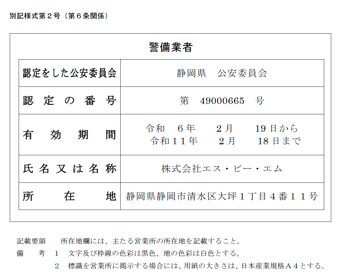 ・警備員指導教育責任者 2号警備業務